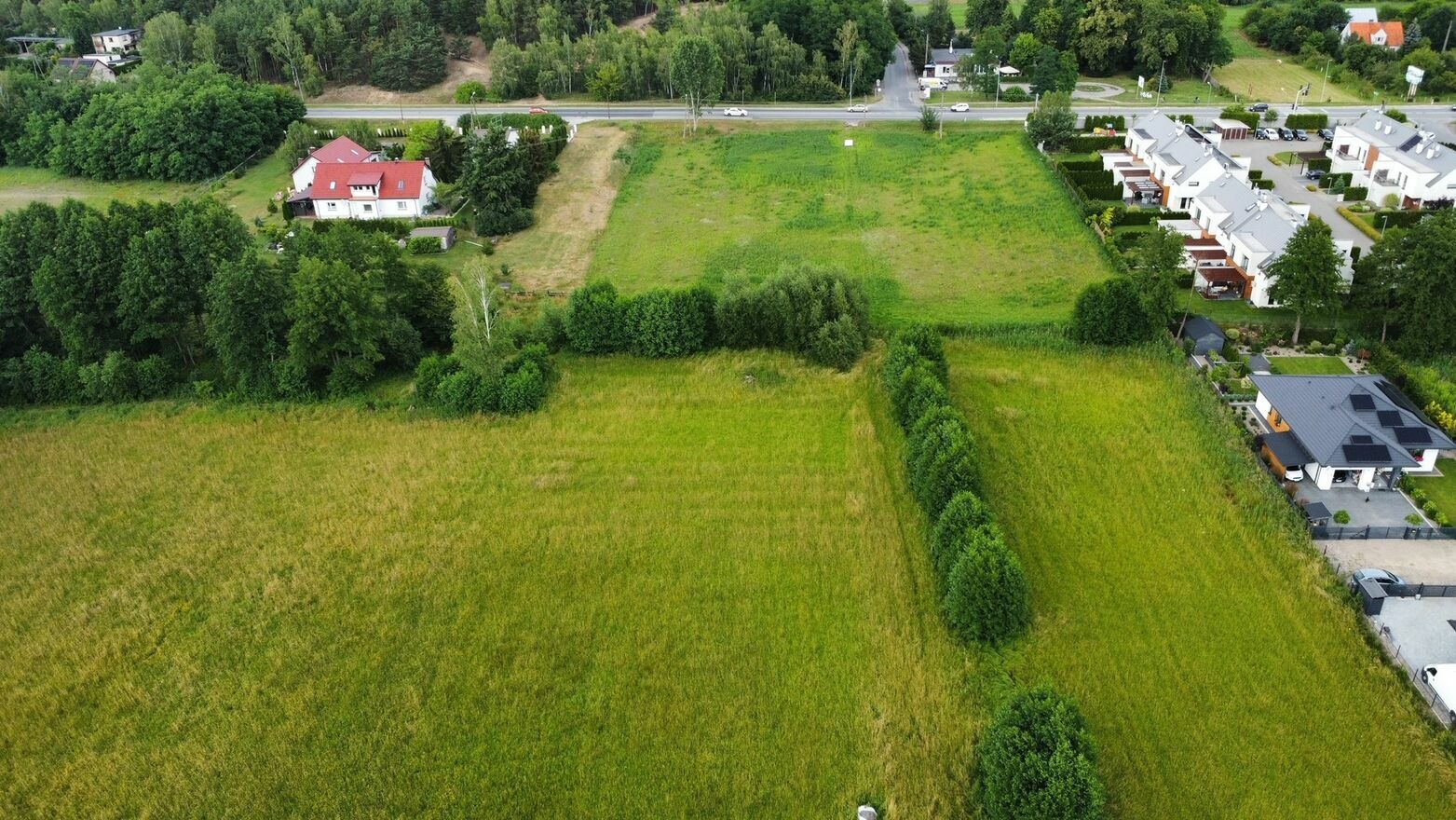 Działki powstały w wyniki podziału większego obszaru, dla którego były wydane warunki zabudowy na budowę kilku budynków mieszkalnych. Po podziale warunki straciły ważność. Nowe warunki zabudowy do każdej z działek po podziale są w trakcie realizacji.